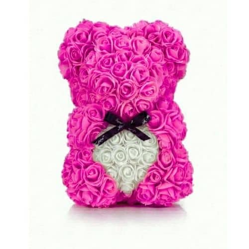 - 1× Rosenbär Pink mit weissem Herz & Masche (ca. 25 cm)
