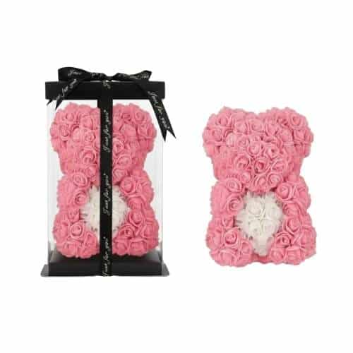 Обратите внимание, что каждый наш мишка из роз изготовлен вручную с любовью и поэтому уникален. Возможны небольшие вариации в расположении роз. Кроме того, цвета на изображениях товара могут немного отличаться от оригинала из-за различных настроек экрана и условий освещения.
